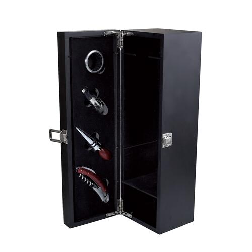 Descripción: SET PARA VINOS CABERNET (Incluye arillo, stopper, boquilla y sacacorchos con navaja.) |
